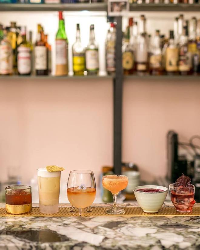 Si tu es du genre flippé de la nouveauté, tu pourras commander un classique (ahem ennuyeux) mojito mais ici la spécialité, c’est qu’il n’y en a pas. Pas de carte, tout est sur mesure et u-nique : tu te pointes, tu balances que tu aimes l’acidulé et hop on t’envoie un cocktail rhum blanc fraises citron vert estragon mousseux et frais. Si tu dis non au sucre (on ne juge pas), tu vois débarquer un prosecco abricot romarin fleur de sureau. Avant d’attaquer le 3e round, tu boulottes une sorte de chips sucrée fraise estragon façon « junk-food-mais-mieux » et hop, le melon colada finit de plier le game. Tout ça en terrasse (rose bonbon) avec des serveurs aux petits soins qui te balance des « bisous » en-veux-tu, en voilà. Parfait pour bluffer ton prochain date Tinder.