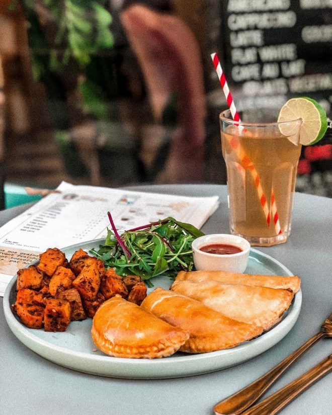 Un premier signe ne trompe pas : à peine entré dans ce café cosy, nos narines sont convaincues que cette adresse tenue par Léa et Andrés va nous plaire. Et le flair a vu juste : des empanadas joliment dorées au bœuf, poulet-maïs et chorizo-fromage se pointent à notre table. Comme en Colombie, on coupe l’extrémité, on trempe dans la sauce et on s’envole au 7e ciel du chausson latino. On complète l’affaire avec un pan colombien au fromage, dodu comme un donut. Grosse pression pour le sucré : le cake coco passion sera t’il à la hauteur ? Accompagné d’un café torréfié minute, il a caressé nos papilles et rendu heu-reux (donc, oui).