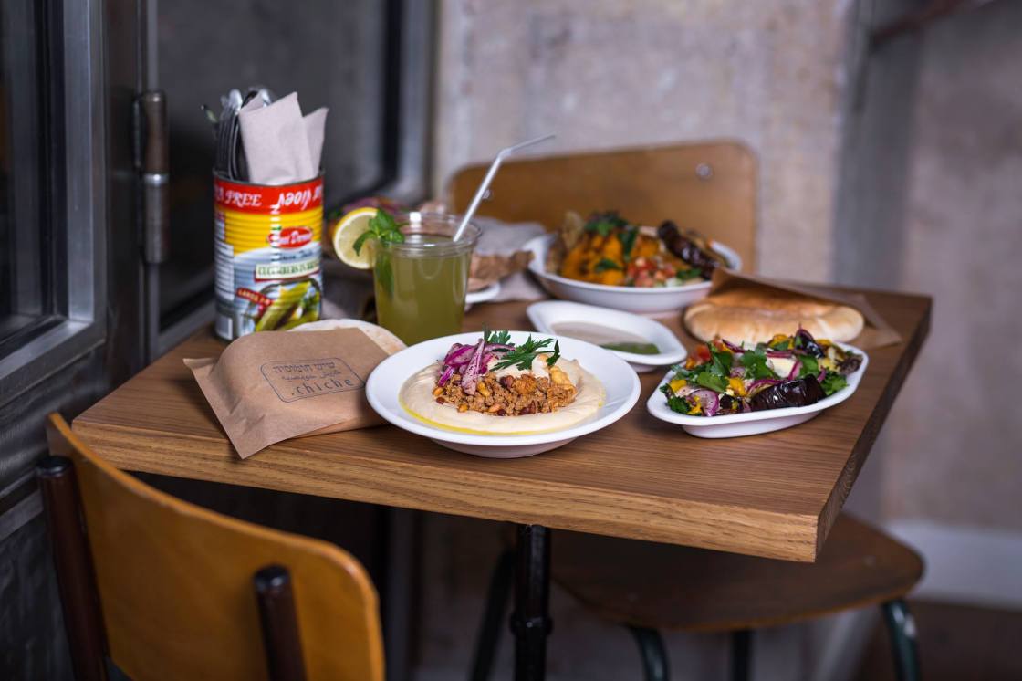 Dire qu’avant le houmous était condamné à être un vulgaire apéro de dernière minute, choppé à la supérette avec une baguette toute molle … Il en a fait du chemin le petit en quelques mois. Enfin sacré au rang de plat à part entière, il s’exhibe avec des pois chiches, des oignons rouges et un œuf dur, tout en rondeur et en douceur. Petit mais costaud, il réussit à nous combler à lui seul, nous qui nous imaginions déjà en train de tâter la babka en dessert. Ce sera pour une autre fois : avec sa pita moelleuse il a mis notre appétit au tapis.