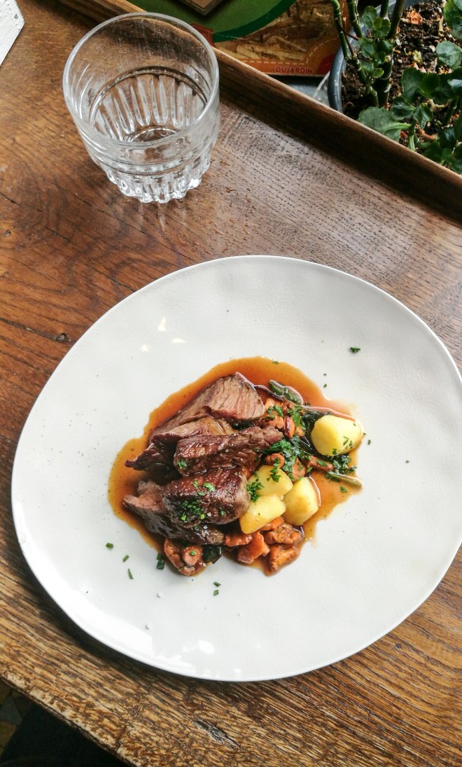 Wow. L’onomatopée résonne entre nos tempes tandis qu’on avale une première bouchée de bavette de bœuf black Angus. Autour d’elle viennent danser des pommes de terre et des girolles : plus parfait comme combo, tu meures. Enfin, ce serait quand même dommage de passer l’arme à gauche avant le dessert parce que la poire pochée-sorbet poire-gelée de thé Earl Grey n’est pas en reste niveau dinguerie. À ce stade là, on sait qu’on va revenir souvent et notamment pour goûter au brunch qui fleure bon le Japon. Pêle-mêle ça donne : udon chaud et œuf mollet, merlu grillé au koji, gâteau nippon … bref, de quoi nous aider à accepter l’idée que la semaine recommence bientôt.
