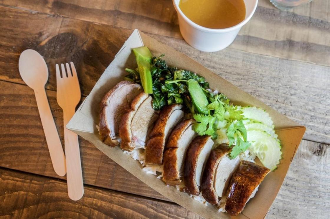 Ne t’arrête pas aux apparences. Ce n’est pas parce qu’un décor est léché-branché, avec pierres apparentes à la new-yorkaise et néon graphique que t’as mis les pieds dans une pâle copie de resto thaï. Street Bangkok est la preuve par trois qu’après les yeux, c’est le palais qui est comblé. Au vu des canards laqués qui se pavanent, cette fois, c’est la rôtisserie asiatique qui est sous le feu des projecteurs. Et comme on est des indécis chronique, on plonge dans le « Grand mix » pour palper le porc, le poulet et le canard laqué d’un coup d’un seul. Puisque c’est bien meilleur avec les doigts, enfile le gant en plastique et décortique avec entrain cette viande dorée, saumurée dans des épices que tu relèveras à ta guise d’une sauce tamarin. Cancanement intérieur et addiction naissante.